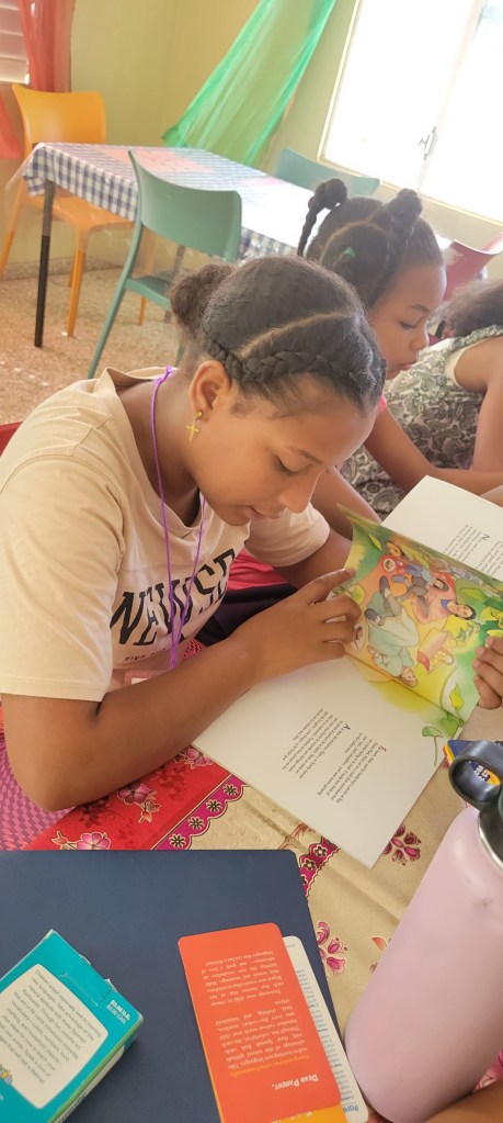 The older girls benefit from special content. First-time traveler Mary facilitated this group where they learned the “7 Habit of Highly Effective Teens” by Sean Covey. The girls already have excellent habits – a tribute to the Sisters – but the mid-summer reinforcement never hurts. The girls were engaged and thoughtful. Our assignment for them was to present their learnings each evening .