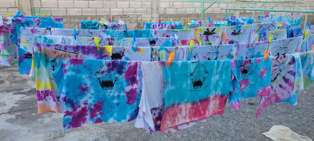 While Jeane and I went to the graduation ceremony, the rest of our group unpacked our supplies and tie-dyed t-shirts! They even made ours.