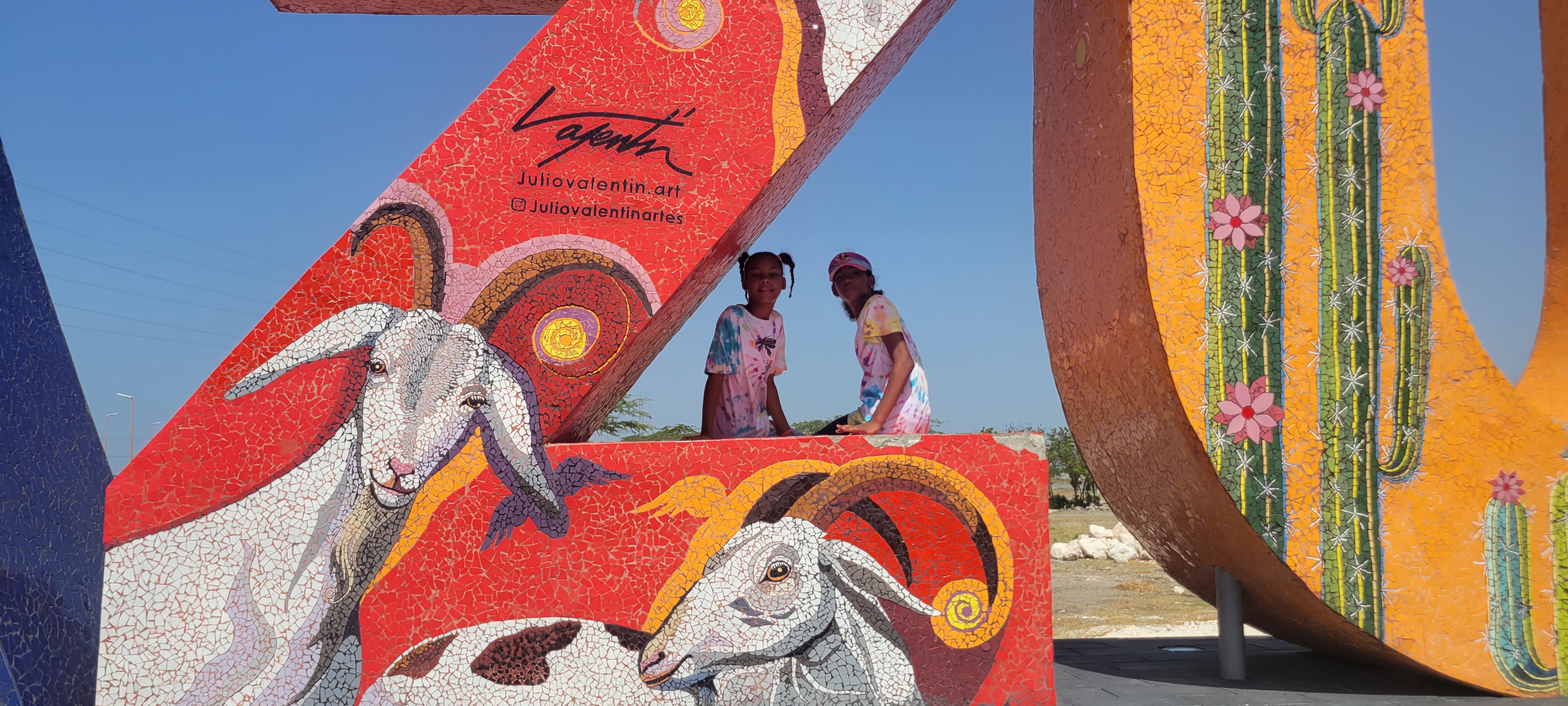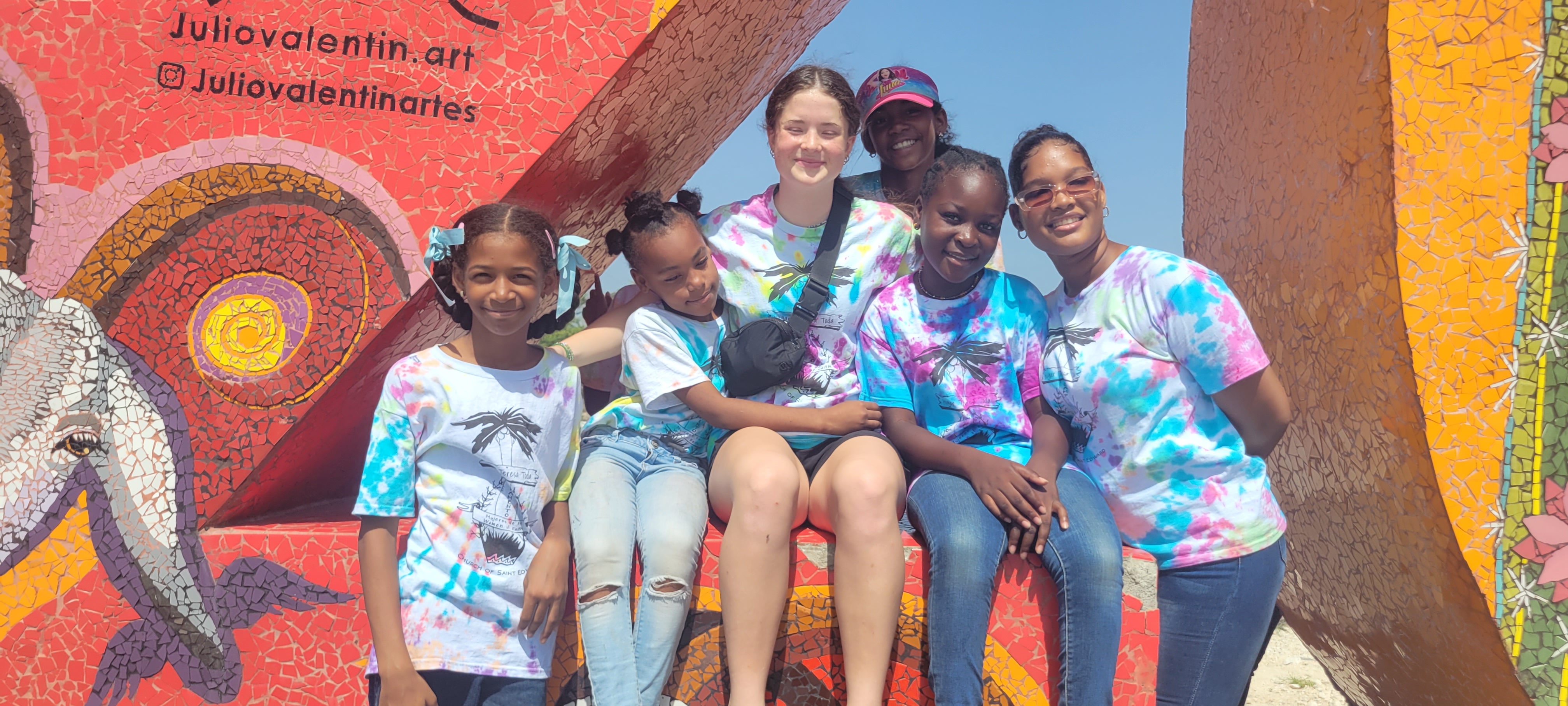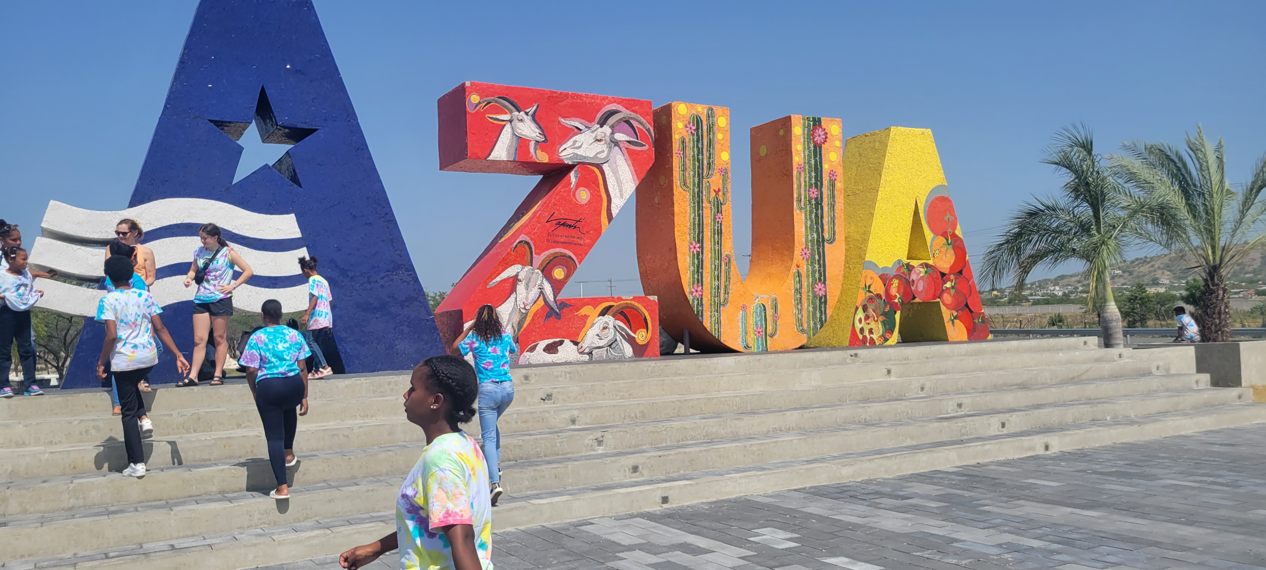 Dominican Republic towns each have a colorful welcome sign to welcome you to each town. It depicts highlights of the area. We couldn’t resist a group picture plus a few more!