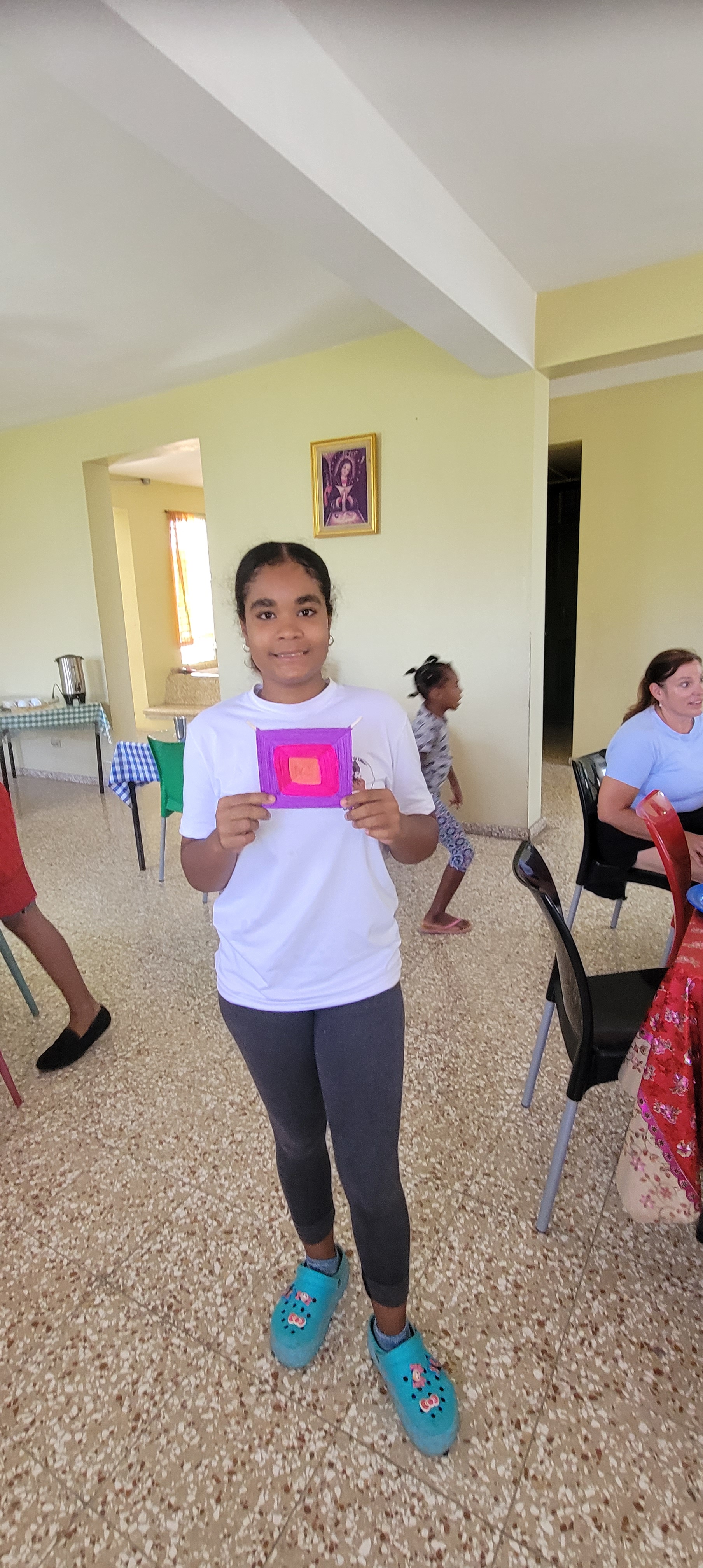 Our days start with a daily ritual when we sing songs and read the reading of the day. At the time, the leader reviews the basics of the story – who were the characters? What happened? etc. In the reflection station, Jeane guides age-appropriate reflection. They may talk about “What does this story mean to me?” or ” How does it relate to me today?” Over the years, we’ve learnedthate girls are more open to sharing their thoughts while they color.