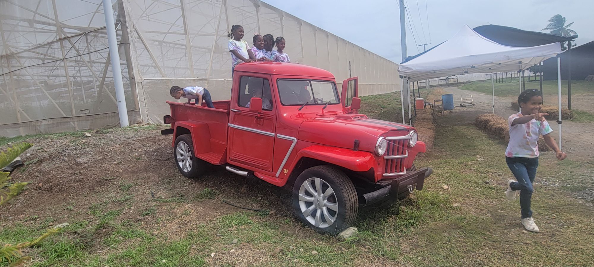 Our first stop of the day was Tierra Tropical, a “magical farm.” It is a real vegetable and flower farm, but it also has friendly animals you can feed, a birdhouse, tractors, and other things you can climb on, and a safari.