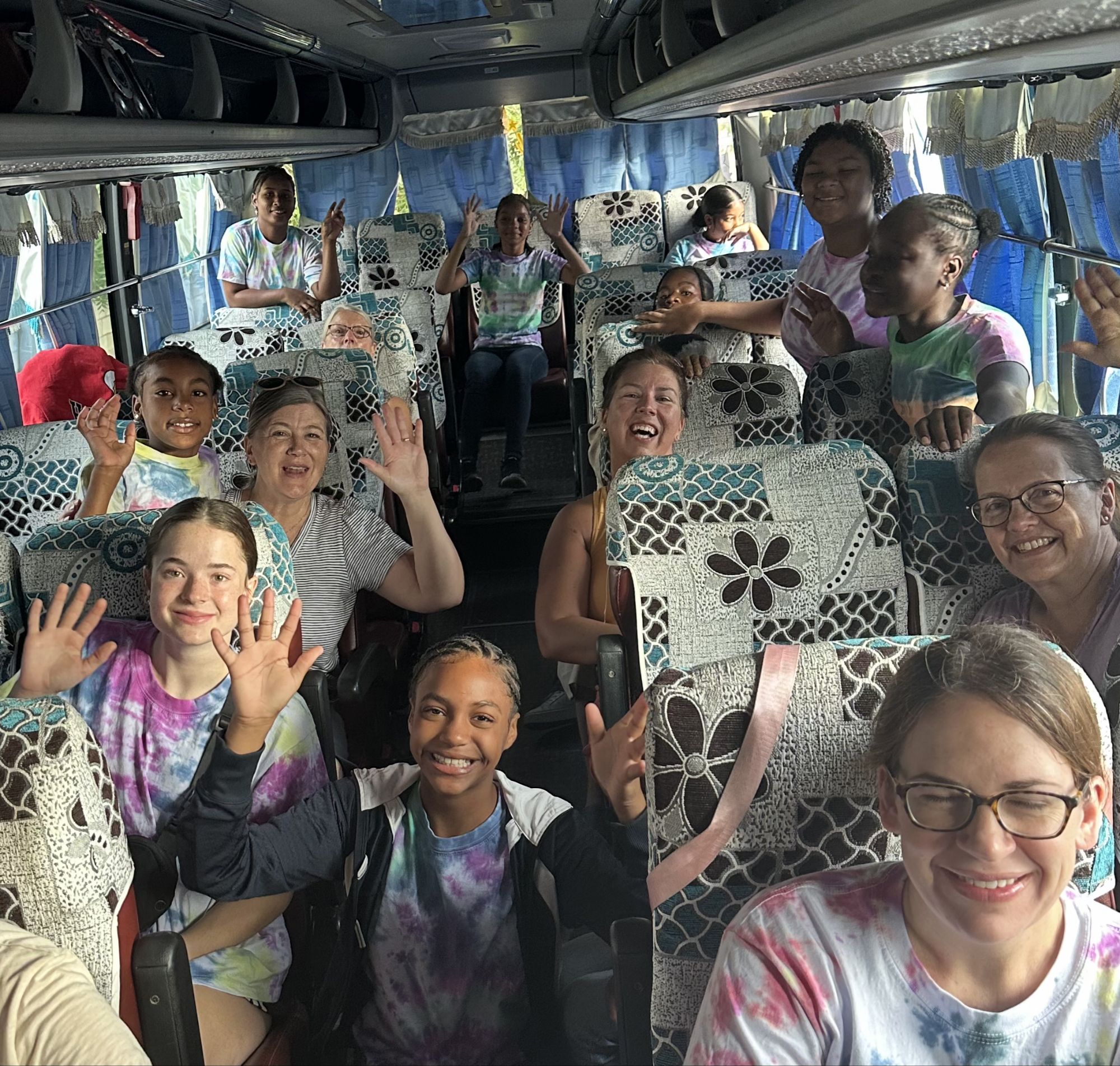 We needed a big bus to transport all of us, and that meant Wendy. Wendy’s luxury bus is so big that it can’t come into the Hogar, so we needed to meet him at the elementary school “El Colegio de San Jose.”
