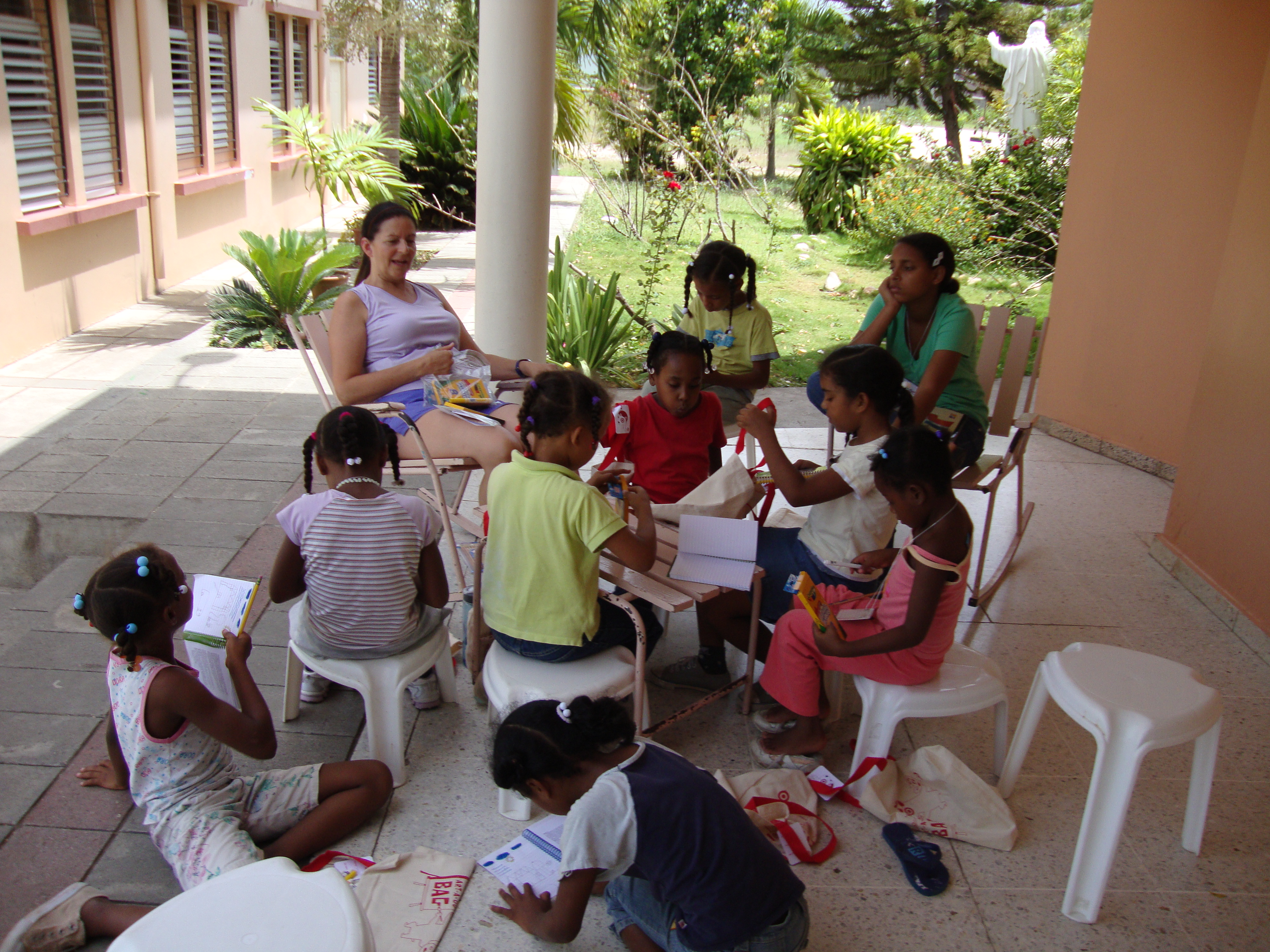 We plan 4 days per week. The fifth day (which could be any day of the week) is an excursion or a special event of some kind. We develop a VBS curriculum on the theme “Women of the Bible”. We also work lessons like health, community building/self-esteem, science/engineering, environment, or other topics that travelers want to share with the girls. Here is the Day 1 information from last year.