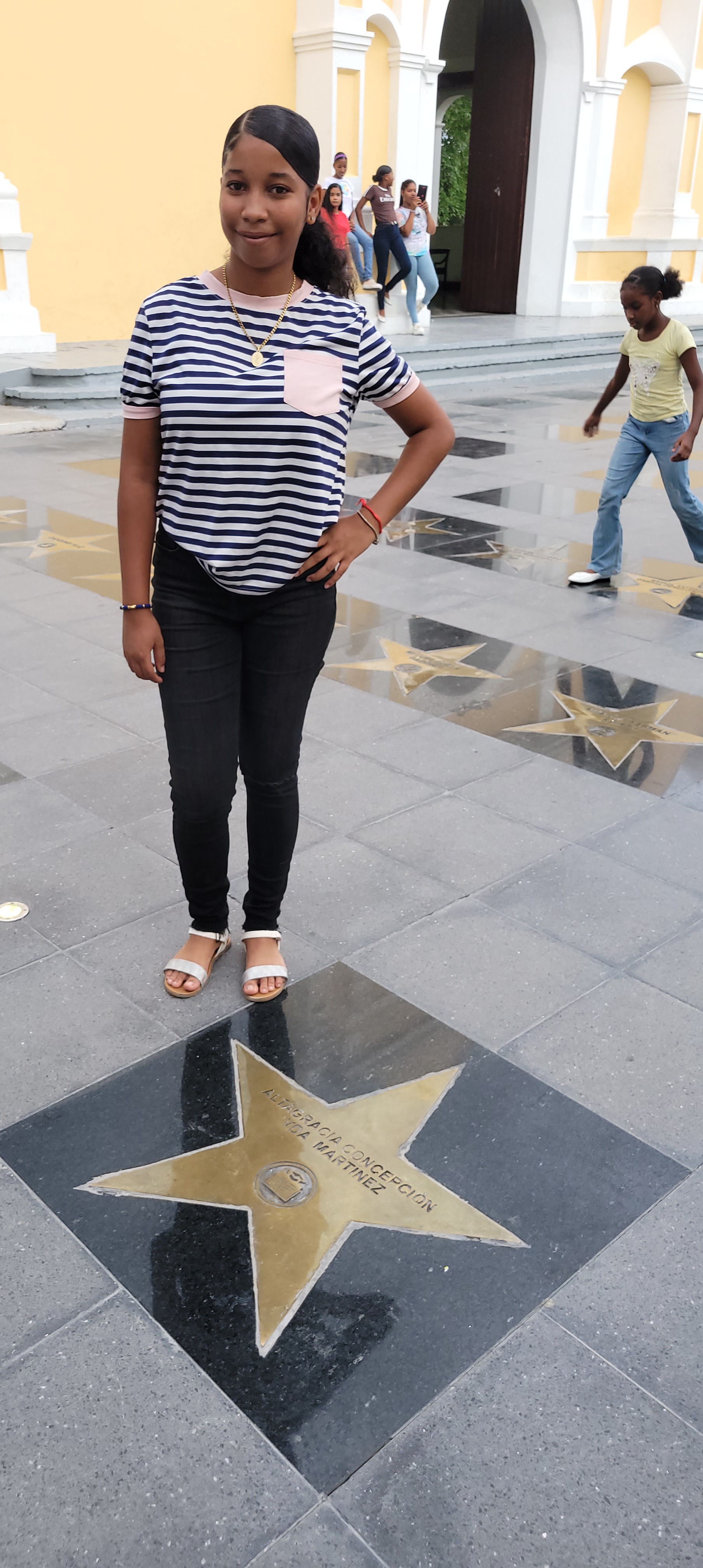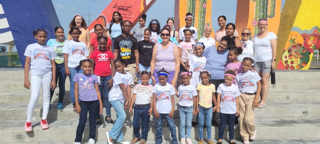 Wednesday brought a change of pace with a full‑day paseo to Bani, a nearby town about an hour from the Hogar and the hometown of baseball star Albert Pujols, who has invested significantly in the local community. Because the whole group traveled together, a large bus – driven by longtime partner/busdriver Wendy – was hired; the bus is so large it cannot enter the Hogar grounds, so everyone walked to the nearby elementary school, Colegio de San José, to board.