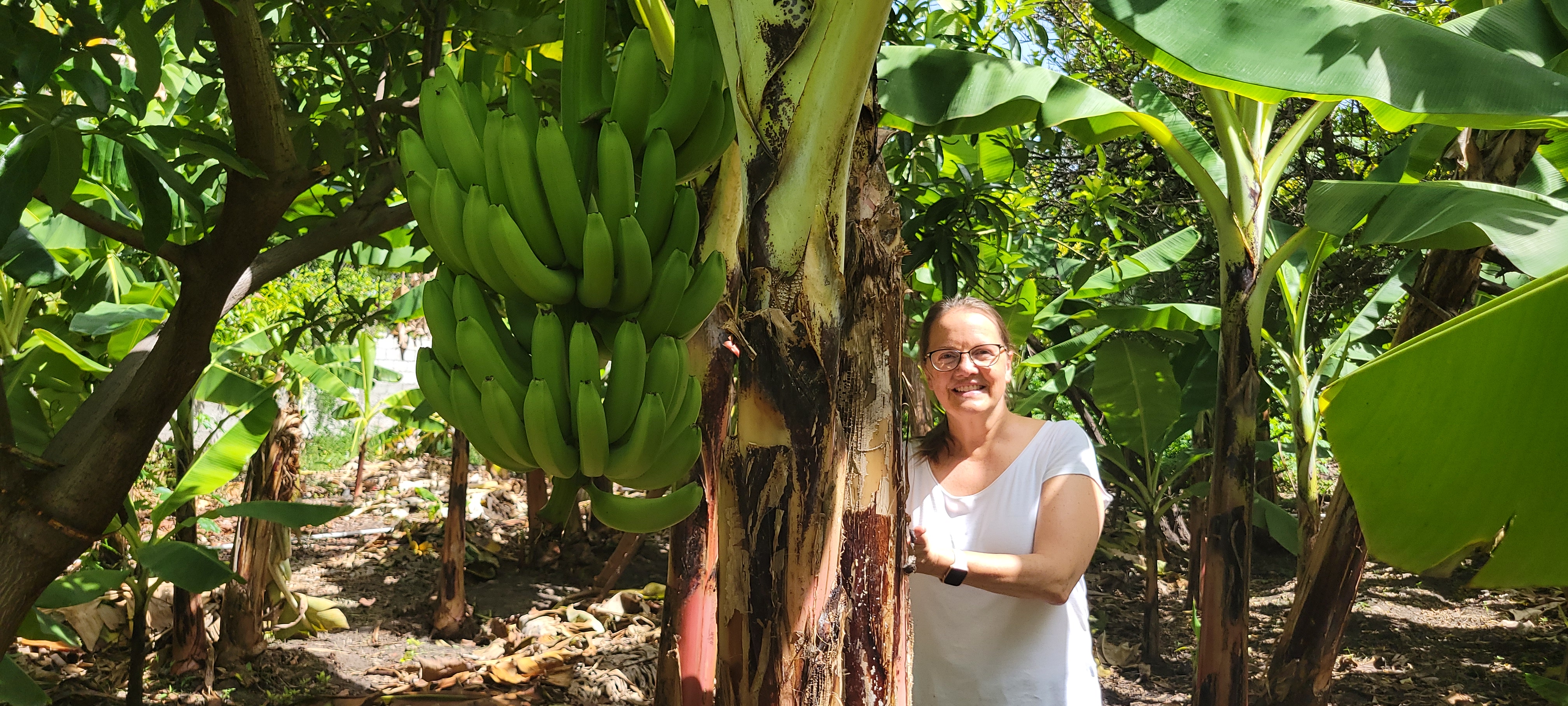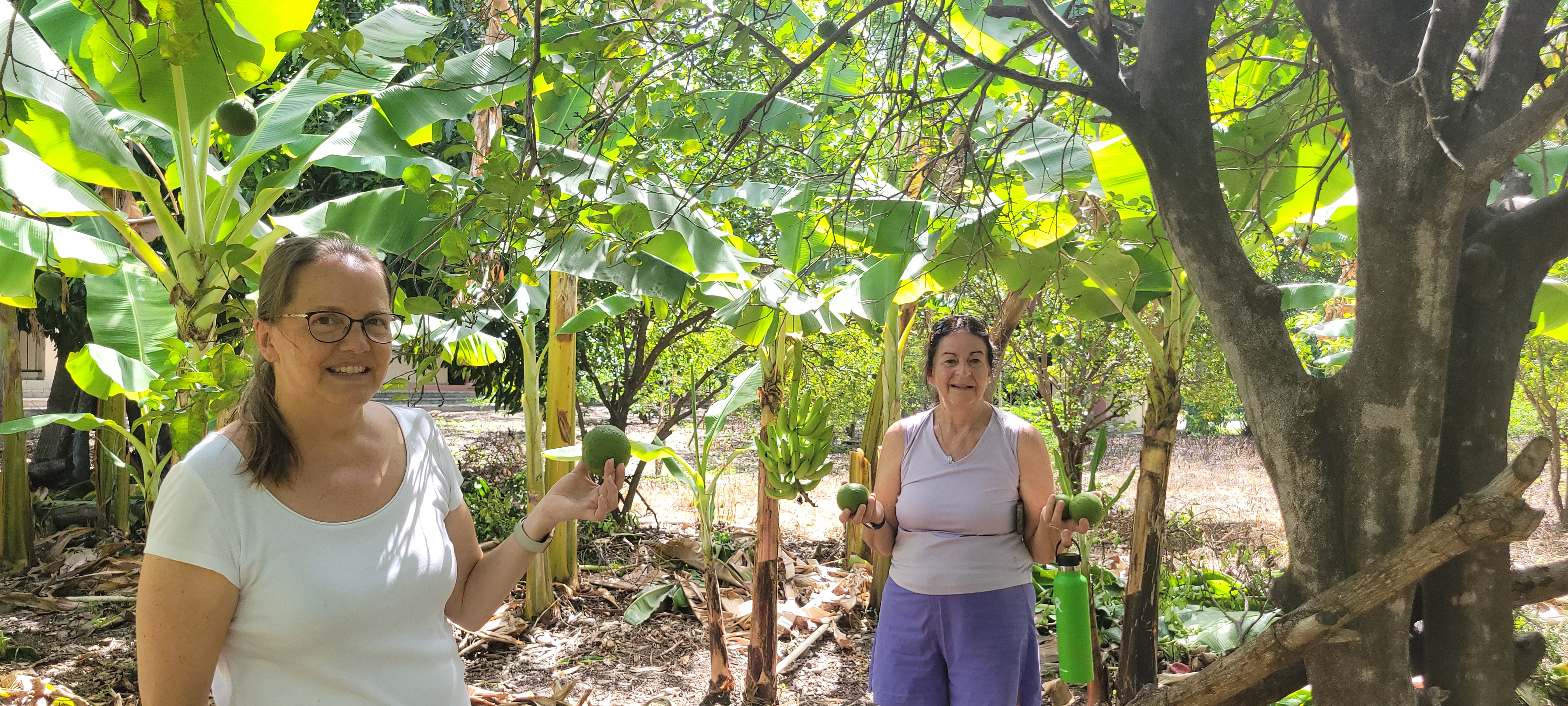 The Sisters—Grace and Stefanie, with driver Job—met the team with the familiar guagua and a small truck for luggage, and the group stopped at El Carmelo for a first shared meal and the traditional traveler photo in the garden.