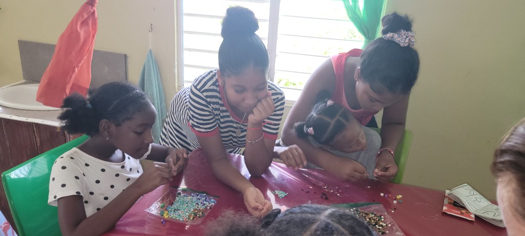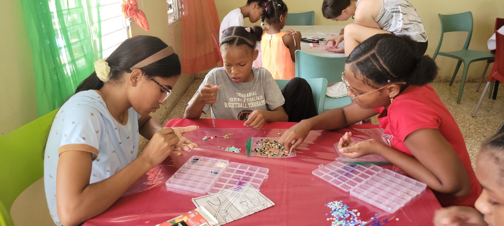 A key logistical improvement on Day 2 was staggering the craft time: during afternoon pool sessions, small groups of girls rotated to the kiosko for crafts, dramatically reducing chaos and allowing extended one‑on‑one interaction with travelers. This simple change exemplifies how we constantly make changes for more personal mentoring, emotional support, and space for each girl to feel seen and heard.