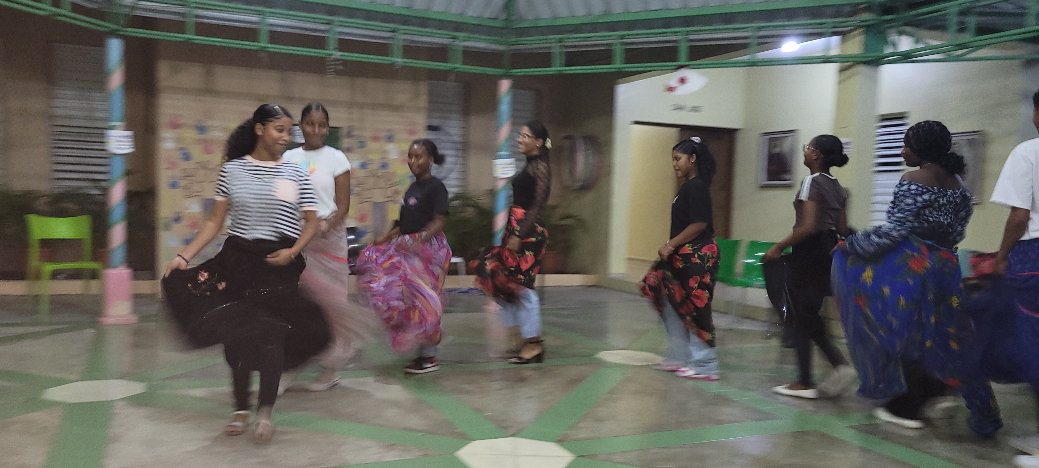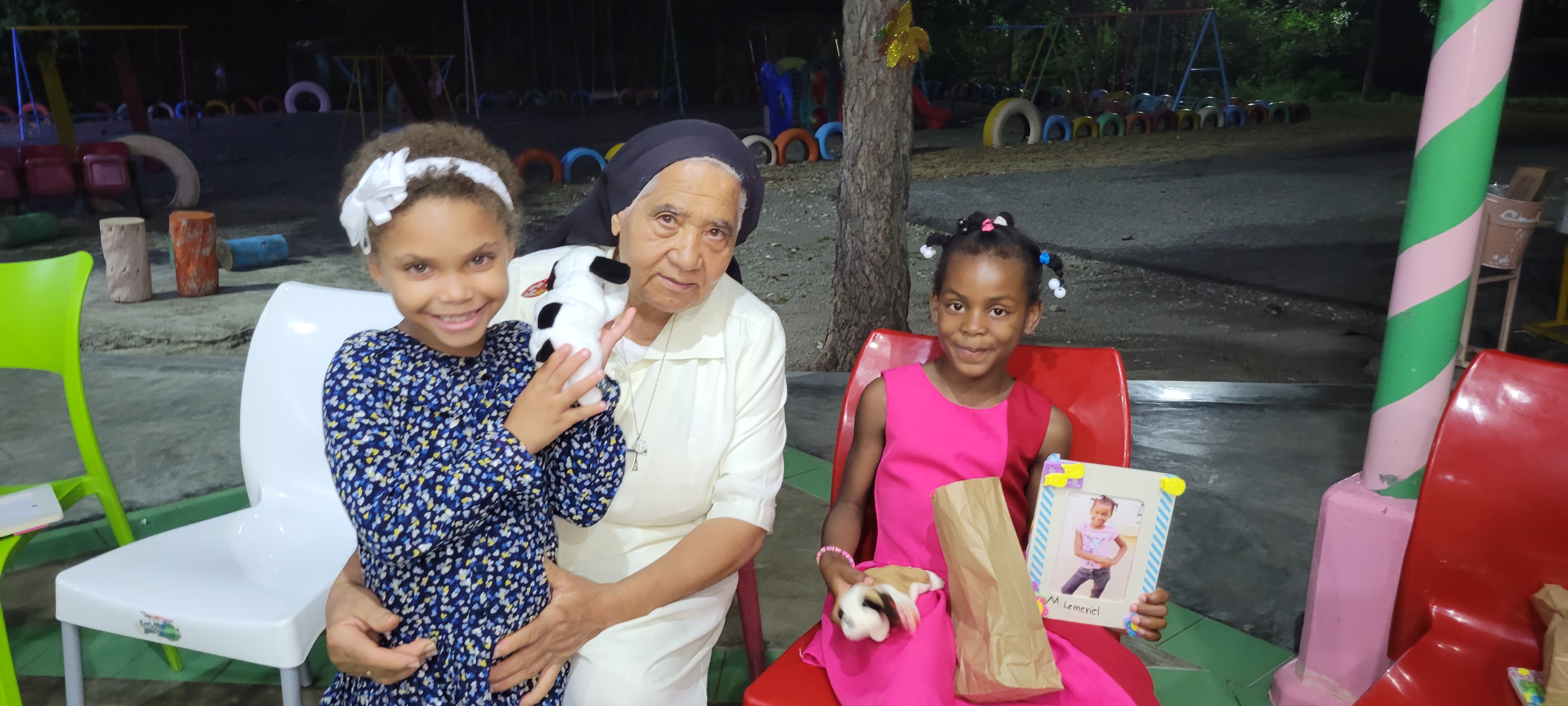 The final stop of the paseo was a safe, well‑maintained park in Bani where the group shared a fried chicken lunch and the girls spent the afternoon on the playground, running, climbing, and simply enjoying being children in a different setting. By the time the buses returned to Azua, the girls were happily exhausted, and the evening circle was intentionally shorter than usual and held earlier, without skits, to honor their need for rest.